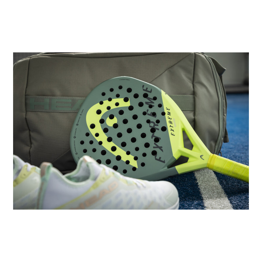 Made from a new, diamond-shaped mold, the EXTREME MOTION PADEL RACQUET is ideal for advanced and professional players who are looking for both extreme power and maneuverability. While the new Soft Butt Cap technology provides a softer playing feel and dampens vibrations, the innovative Auxetic technology delivers extra power and sensational impact feel. Lighter than the EXTREME PRO, the EXTREME MOTION has a hybrid woven hitting surface for enhanced power and touch, as well as Extreme Spin technology. The exclusive, colorful design adds to the racquet's premium, contemporary appeal. • Extreme power and maneuverability • For advanced and professional players • New, diamond-shaped mold • New Soft Butt Cap technology • Lighter than the EXTREME PRO • Auxetic technology for extra power and sensational feel • Hybrid woven material in the hitting surface for extra power • Extreme Spin technology • Exclusive, colorful design