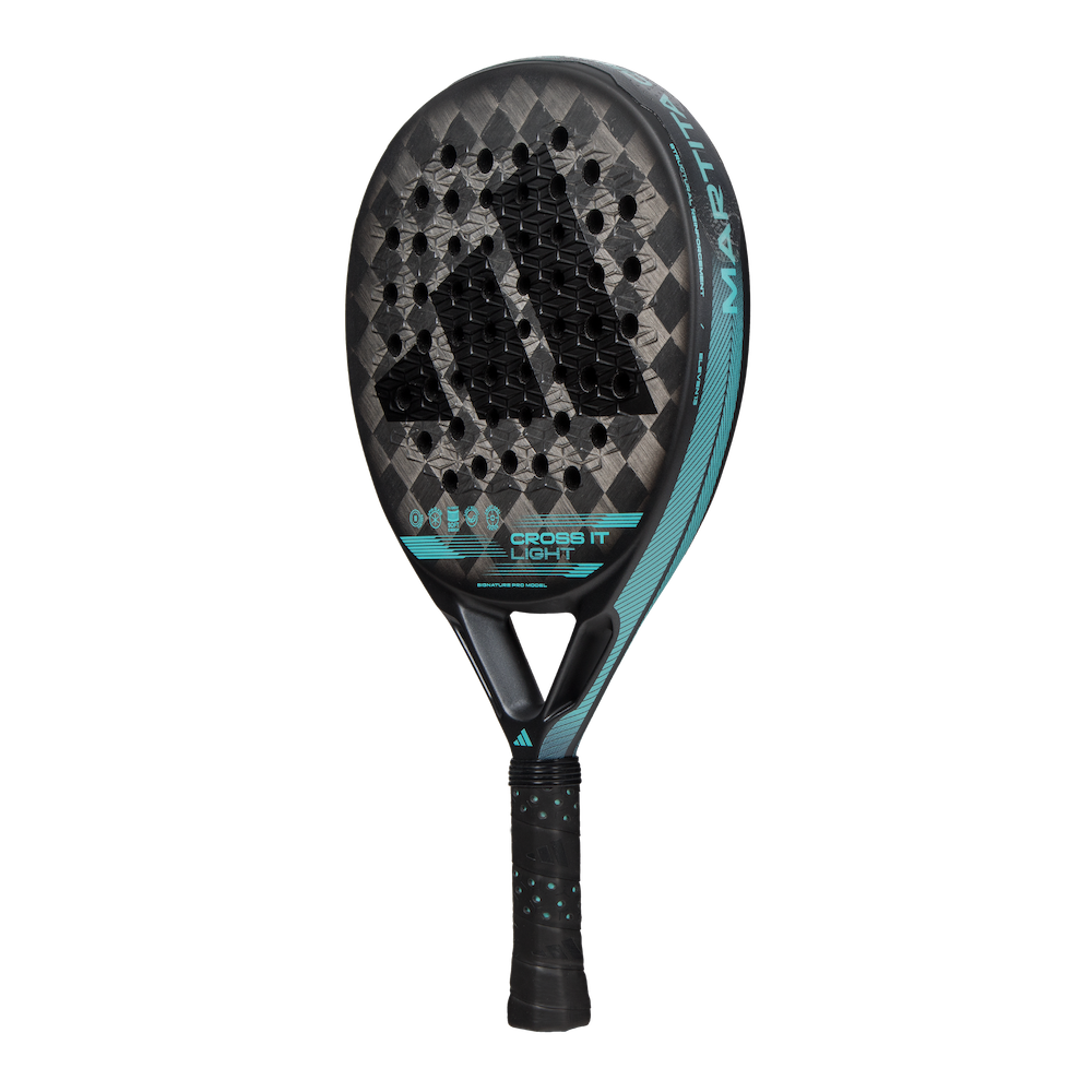 Marta Ortegan maila vastaa mestarin tarpeisiin: siinä on kaikki teknologia käytettävissään tarjotakseen vertaansa vailla olevaa suorituskykyä. CROSS IT LIGHT on Marta Ortegan maila. Se on ammattilaispelaajille suunniteltu maila, joka sisältää uusimman innovaation padelkentälle. Lisäksi siinä on Light-mailojen keveyden tarjoama helppokäyttöisyys. Se on valmistettu hiilialuminoidusta 24K-kuidusta pinnalla ja EVA Soft Energy -kumista sisäpuolella. Tämä materiaaliyhdistelmä takaa korkean tehon ja parhaan mahdollisen hallinnan. Marta Ortegan uuden CROSS IT -sarjan maila yhdistää parhaan innovaation, keveyden ja suorituskyvyn. Extra Power Grip, pidempi ote, siirtää tasapainon pään päälle parantaen voimakkaita lyöntejä. Aerodynamiikka tulee padeliin Dynamic Air Flow -teknologian kautta. Sen avulla maila vähentää vastusta ilmalle ja on tehokkaampi iskuissa. ELEVEN 13 puolestaan parantaa kestävyyttä ja tehoa uraauurtavan reikien järjestelyn ansiosta. CROSS IT LIGHT tekee eron. DYNAMIC ILMAVIRTAUS Aerodynamiikka on saapunut padelin maailmaan. Tämä teknologia vähentää mailan kaulaosan ilmanvastusta, mikä lisää nopeutta lyönneissä, erityisesti voimakkaimmissa. ELEVEN 13 Uusi tapa järjestää reiät, joka parantaa mailan kestävyyttä ja voimakapasiteettia. Ne koostuvat tavallista pienemmistä rei'istä, jotka sijaitsevat mailanpään keskiosassa. Tällä tavoin mailanpään keskiosa saa tasaisuutta ja jäykkyyttä. EXTRA POWER GRIP Mailan ote on tavallista pidempi. Tämä tarkoittaa, että mailan tasapaino on keskittynyt mailanpäähän, mikä mahdollistaa suuremman inertian ja paremman suorituskyvyn voimakkaissa lyönneissä.