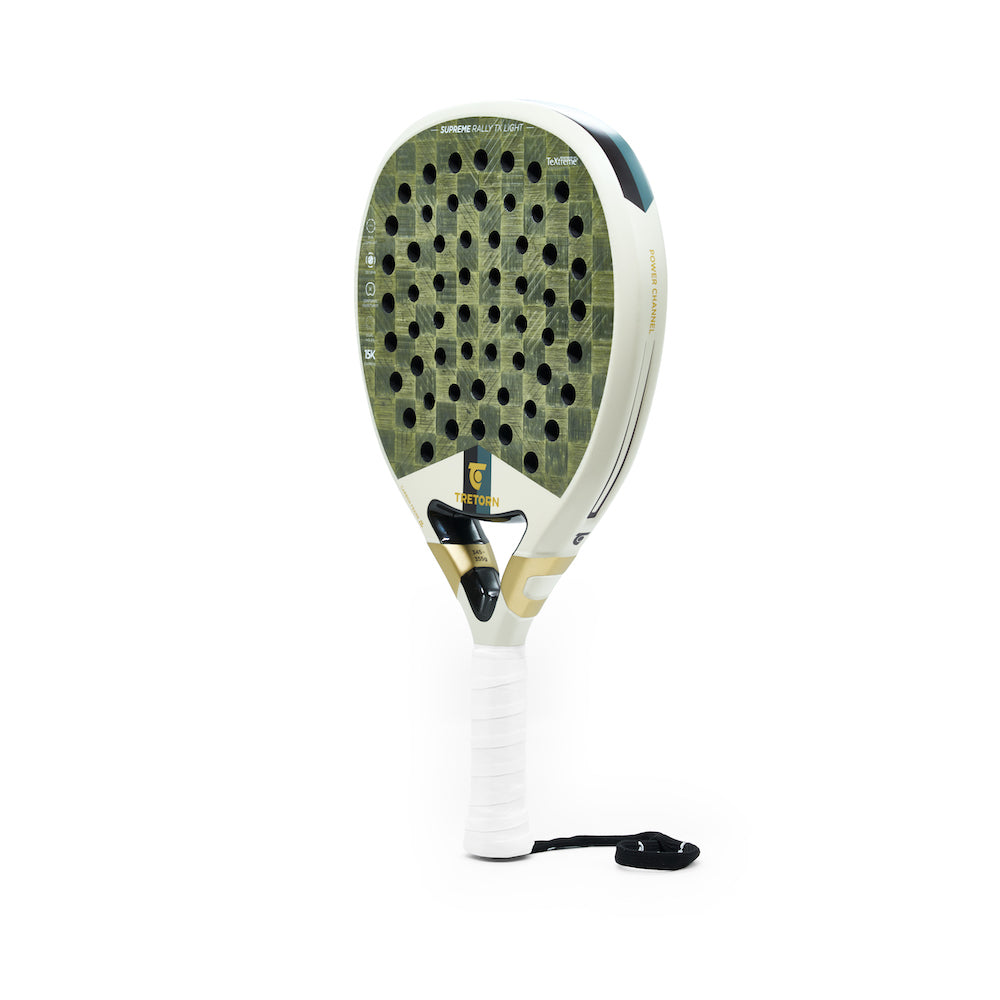 Nosta padel-pelisi uusiin ulottuvuuksiin poikkeuksellisen SUPREME RALLY TX LIGHT -padelmailalla. Maila on tehty pelaajille, jotka etsivät hienostuneisuutta ja ketteryyttä mailassa, maksimaalisella hallittavuudella ja kevyellä painolla vaivattoman ohjattavuuden takaamiseksi. Maila on varustettu ruotsalaisen TeXtreme®:n 15K hiilikuitukerroksella, joka on ohuempi, vahvempi ja kestävämpi pintakerros, joka tarjoaa nopeamman vasteen perinteisiin hiilikuiturakenteisiin verrattuna. Koe uusi nopeuden ja tuntuman taso jokaisella lyönnillä ainutlaatuisen TeXtreme®-teknologian ansiosta. Pehmeä ytimemme, EVA COMFORT, tarjoaa yhdistelmän innovaatiota ja korkeaa mukavuutta. Yhdistämällä TeXtreme®-teknologian EVA COMFORT -ytimeen saavutetaan suurempi keskitetty sweetspot, mikä varmistaa, että jokainen lyönti resonoi kontrolloidulla voimalla ja hienostuneisuudella. Kevyempi paino antaa sinulle mahdollisuuden ohjata mailaa vaivattomasti. Mailassa on myös KAKSOISREIKÄINEN kuviointi, joka optimoi mailan kosketuspisteet ja parantaa hallittujen lyöntien mahdollisuuksia myös lyötäessä mailan sweetspotin ulkopuolella. Tulos? Jatkuva hallinta ja tarkkuus, joiden avulla voit päättää pelin tahdin. Lisäksi mailassa on monisuuntainen 3D-tarra, joka on strategisesti suunniteltu parantamaan kierrettäsi kaikenlaisissa lyönneissä. Nosta suorituskykyäsi SUPREME RALLY TX LIGHT -mailalla – jossa innovaatio, tarkkuus ja saumaton hallinta kohtaavat. Tämä maila on avaimesi uudelle mestaruuden tasolle kentällä taitotasostasi riippumatta.