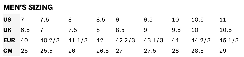 | Koko | 41-1/3, 42, 42-2/3, 43-1/3, 44, 44-2/3, 45-1/3 |